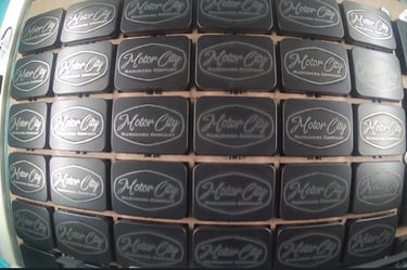 Laser etched design.